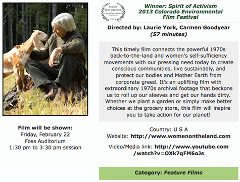 Official selection, Women On The Land screened at the 7th Annual Colorado Environmental Film Festival